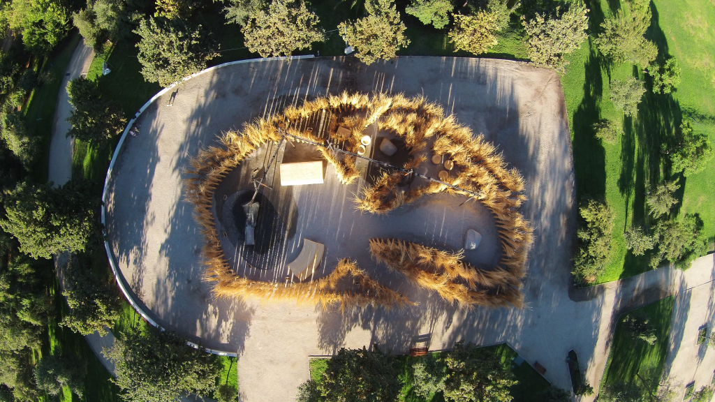 El programa, dirigido en Chile por los arquitectos Jeannette Plaut y Marcelo Sarovic, presenta al público la intervención arquitectónica “Bosque de Mimbre”, obra ganadora para la versión 2015 realizada por el Grupo Talca (Martín del Solar y Rodrigo Sheward) y que contó con la colaboración de Osvaldo Sandoval, productor de mimbre, y del escultor Vicente Gajardo, cuyas piedras intervenidas están presentes en la exhibición.