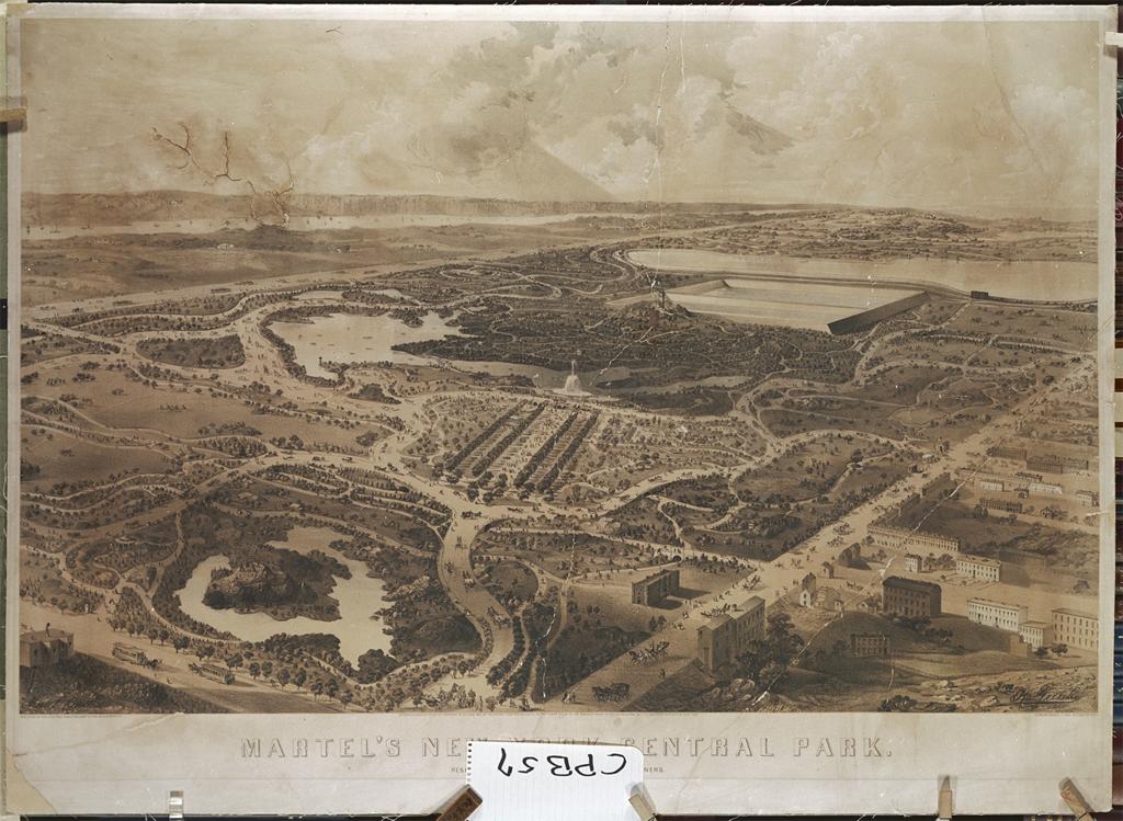 (1) Martel y J.C. Geissler, Martel’s New York Central Park, Respectfully Dedicated to the Park Comissioners (1864) © Artstor. Nótese el incipiente desarrollo inmobiliario que comenzaba a desarrollarse a lo largo de la 5ª Avenida, a la derecha de la imagen.